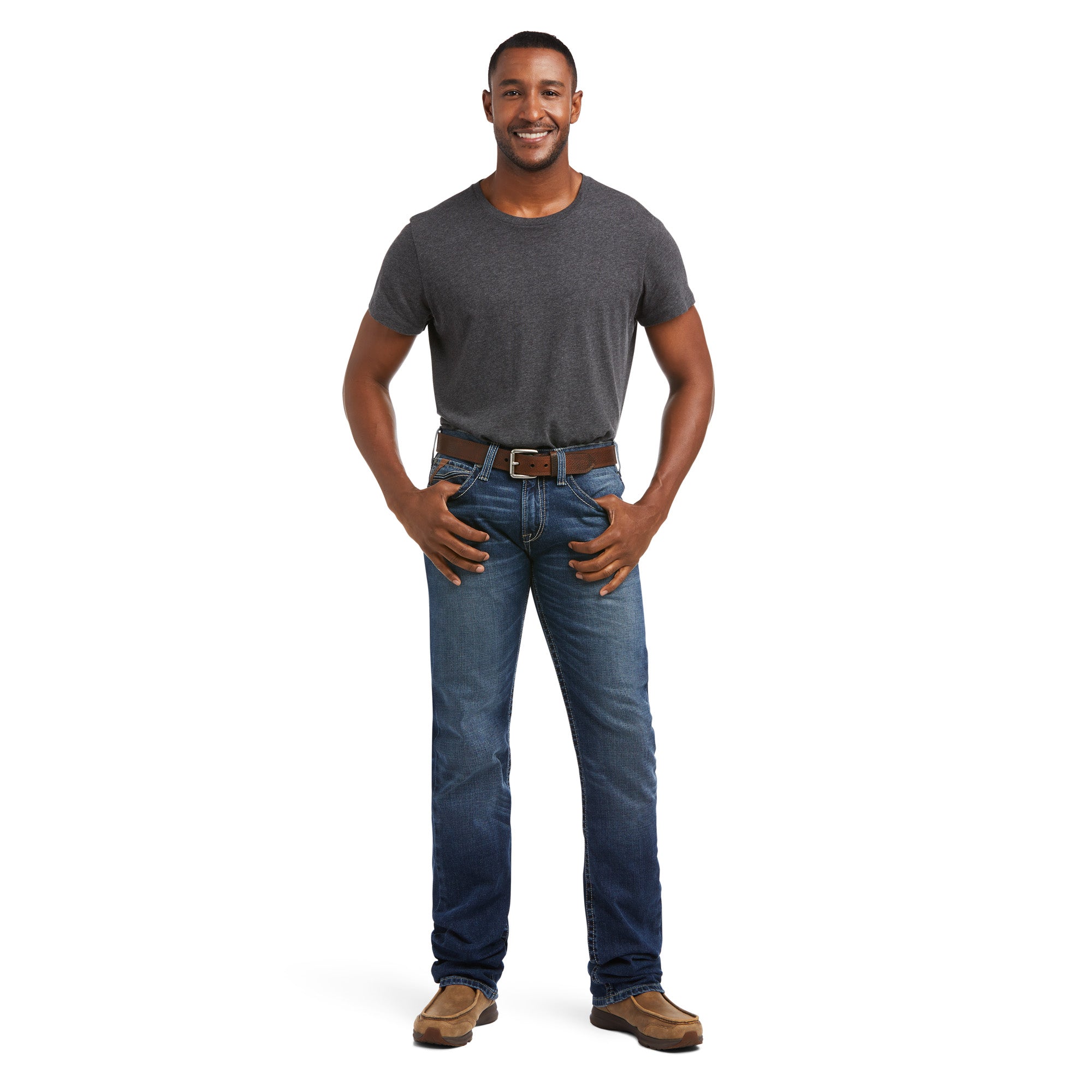 Western sensibility meets rocker edge. Standout in stylish denim artfully faded for a best-of-both-worlds look and a slim, stackable straight leg opening.