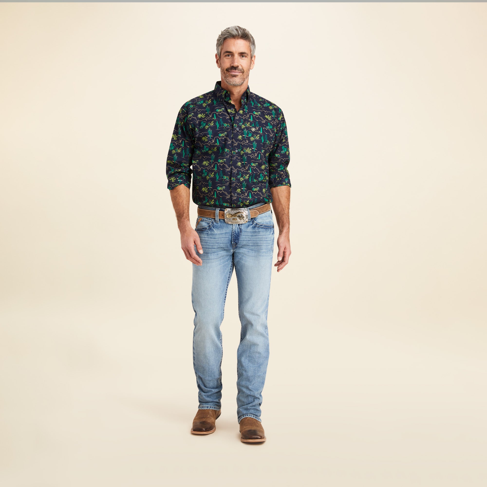Western sensibility meets rocker edge. Standout in stylish denim artfully faded for a best-of-both-worlds look and a slim, stackable straight leg opening.