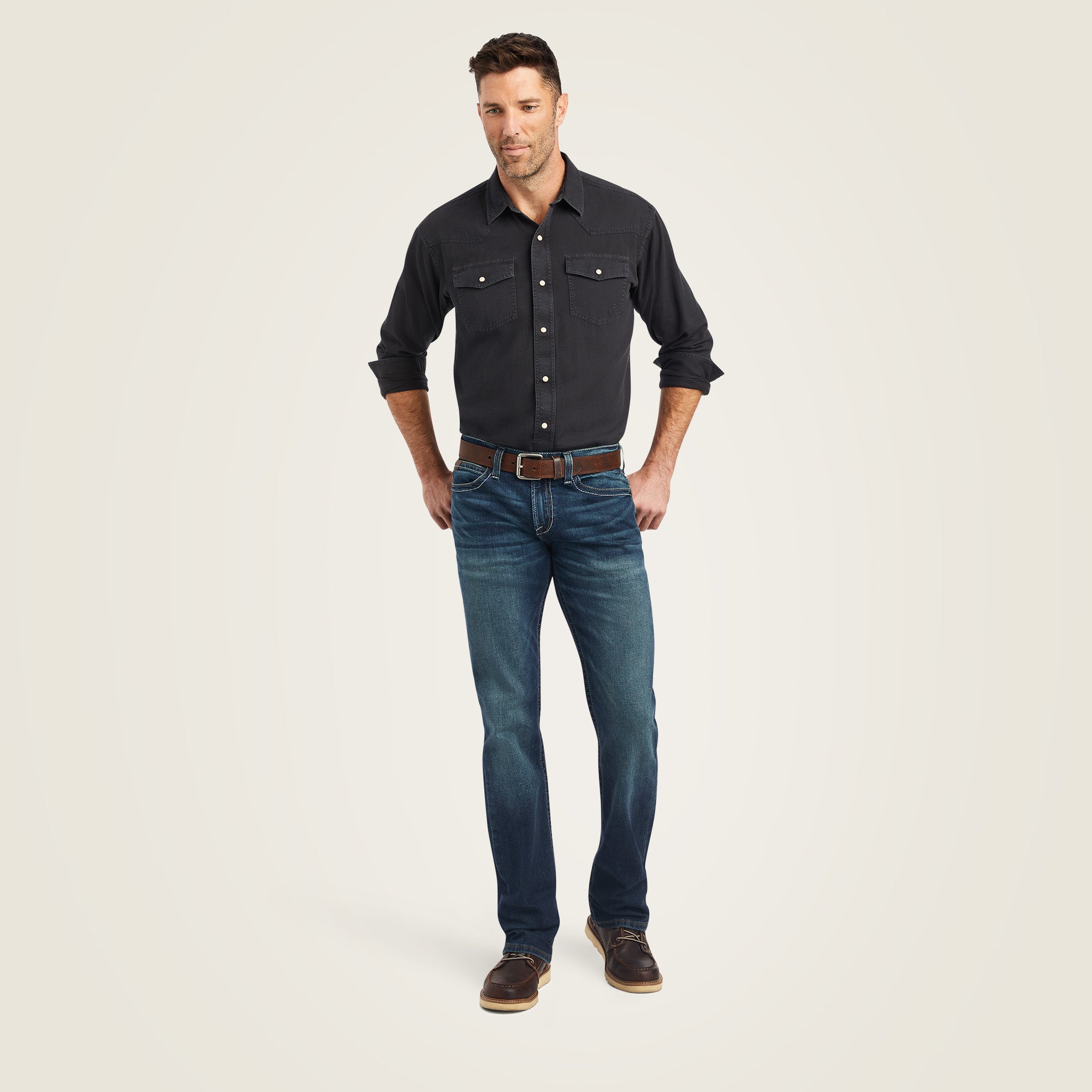 Western sensibility meets rocker edge. Standout in stylish denim artfully faded for a best-of-both-worlds look and a slim, stackable straight leg opening.
