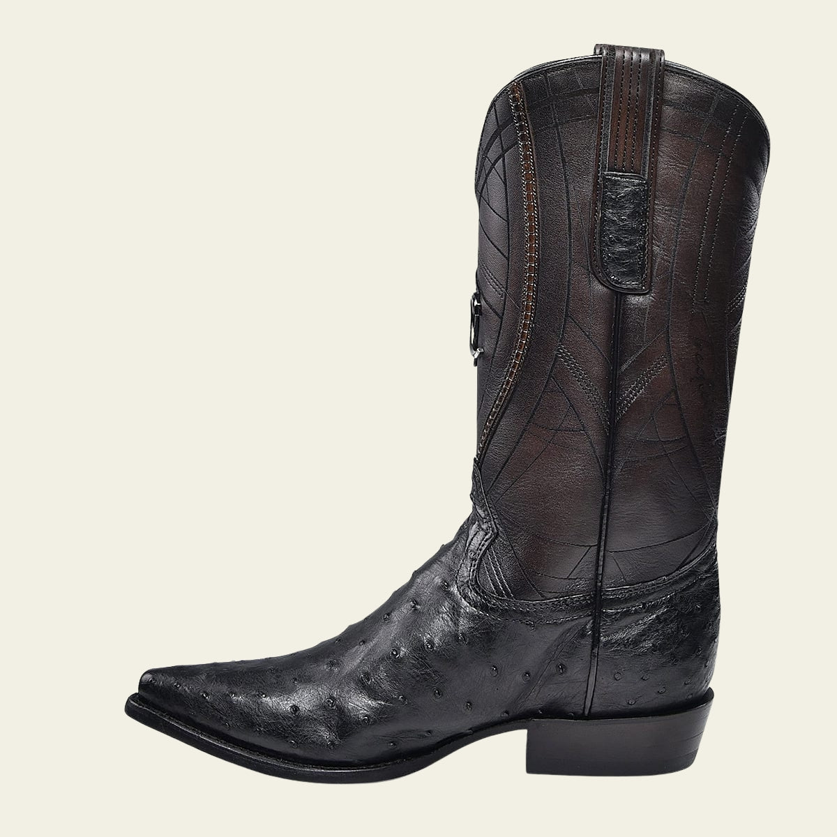 Elevate your style with these exclusive men's cowboy boots. Crafted from genuine ostrich and bovine leather, they feature laser engravings and ostrich leather details. They showcase the iconic Cuadra logo and a durable leather sole with TPU reinforcement. Make a statement of luxury and sophistication!
