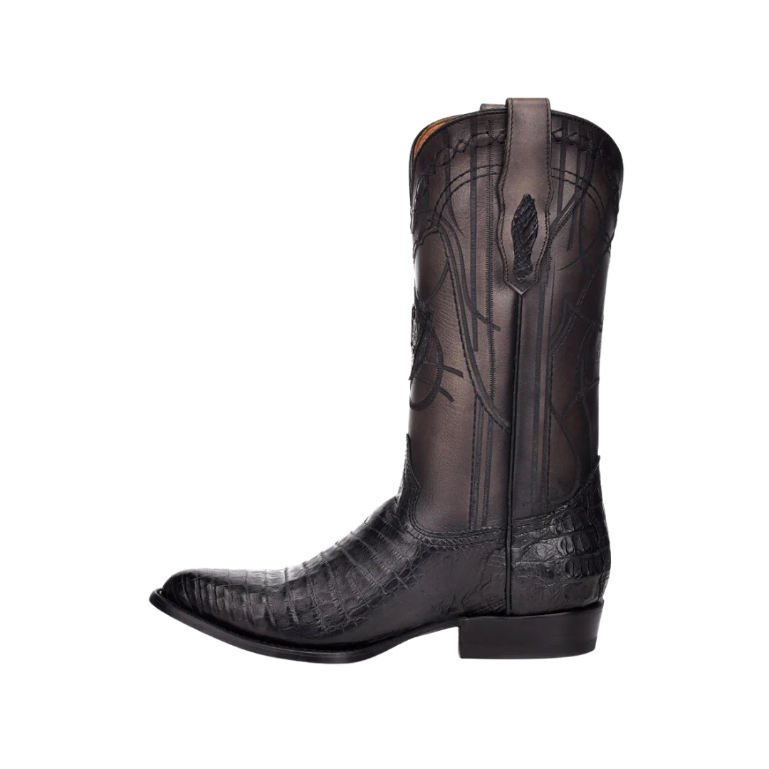 The Cuadra Men’s Black Caiman Laser Western Boots (Style CU422) are a high-end fusion of exotic texture and precision artistry. Crafted from genuine fuscus (caiman) leather and supple bovine leather, these boots offer a striking, hand-painted black finish that highlights the natural scales of the caiman.