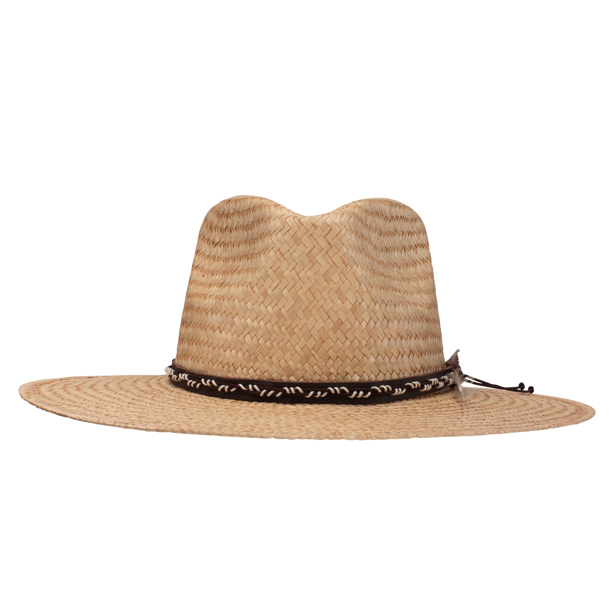 The Grand Loop brings timeless style to any warm-weather adventure. Handwoven one strand at a time from high-quality palm straw, it has a 4 ½” teardrop crown, 3 ½” downturned brim and features a pattern stitch leather hatband and removable feather detail. A cotton sweatband ensures an all-day comfortable fit.