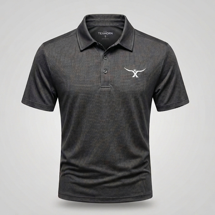 Understated Power. Professional Performance. For the days that require a cleaner look without sacrificing the rugged durability of the Texhorn brand. This solid black polo provides a sleek silhouette, highlighted by high-contrast white embroidery that lets the brand speak for itself.