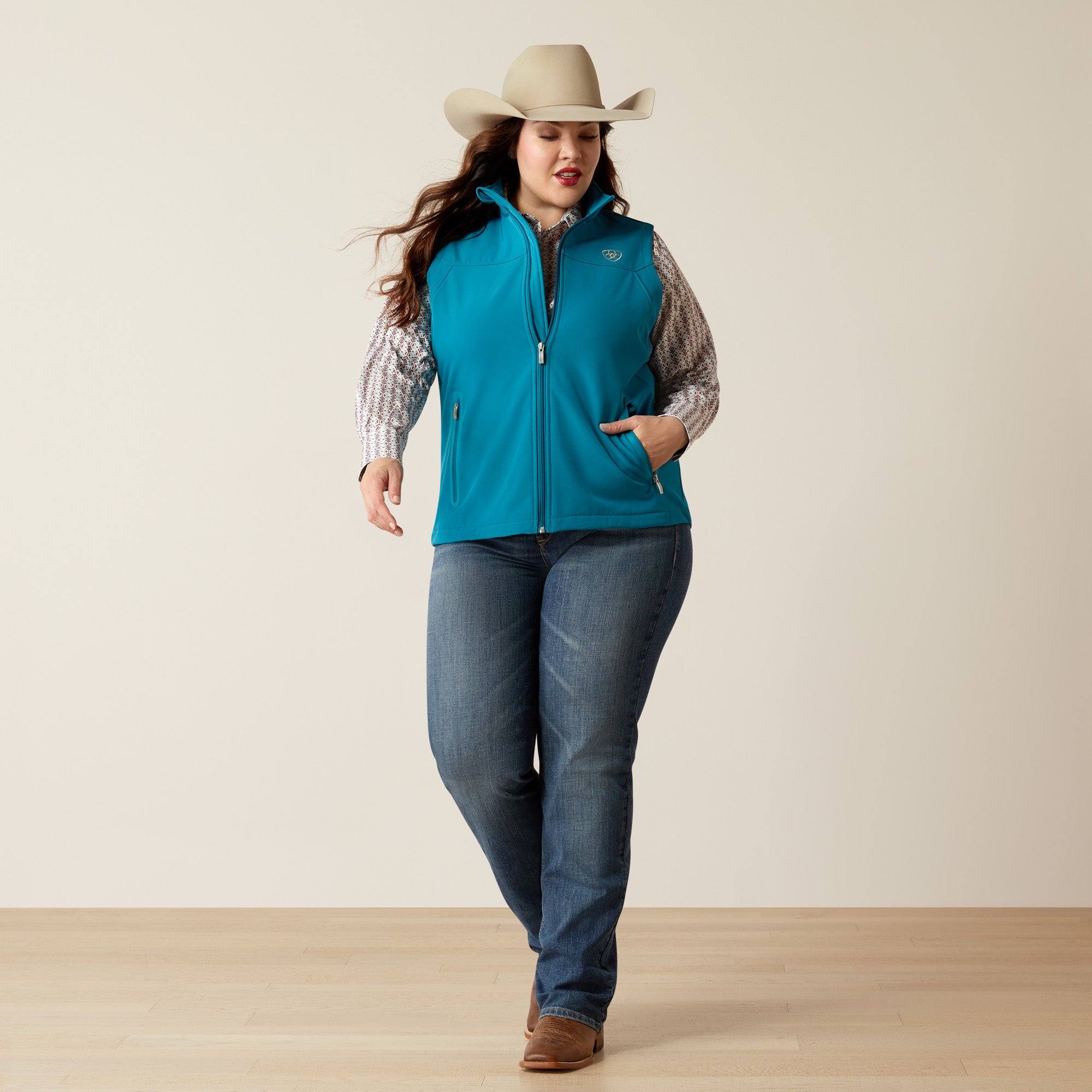 Ariat Women's New Team Softshell Vest, Ocean Depths/Retro Ranch Print