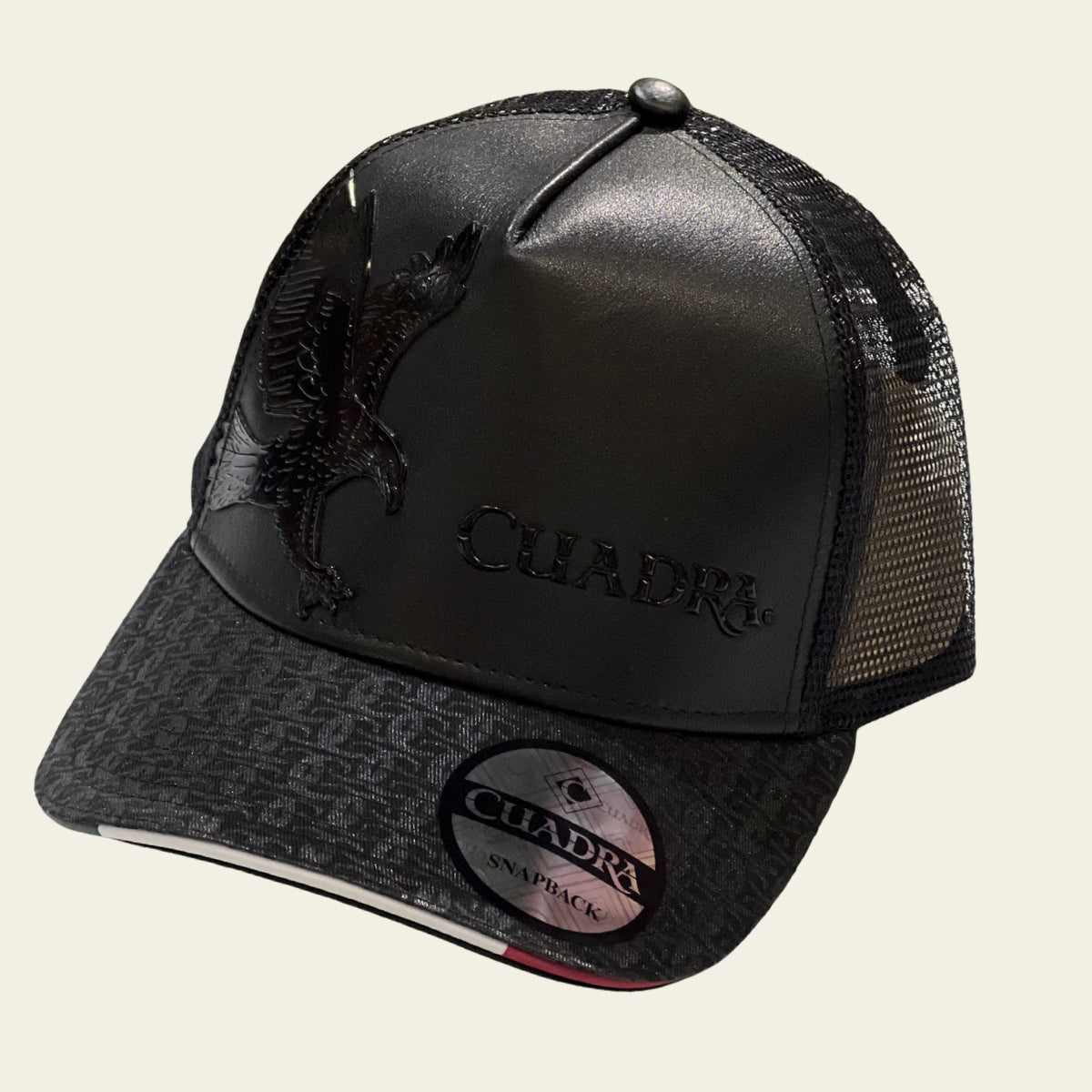 Integrated Cuadra Branding: Positioned right alongside the eagle is a separate leather Cuadra logo patch, seamlessly integrated into the front design to represent the brand's legacy of excellence.