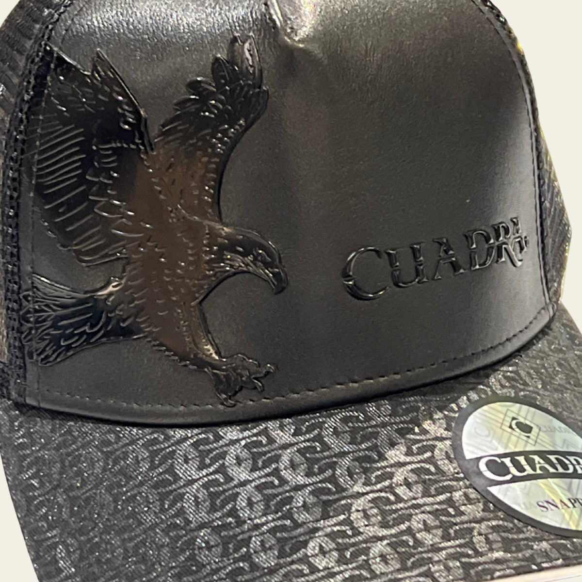 Design: Attached Leather Eagle and Cuadra logo (Front Placement)