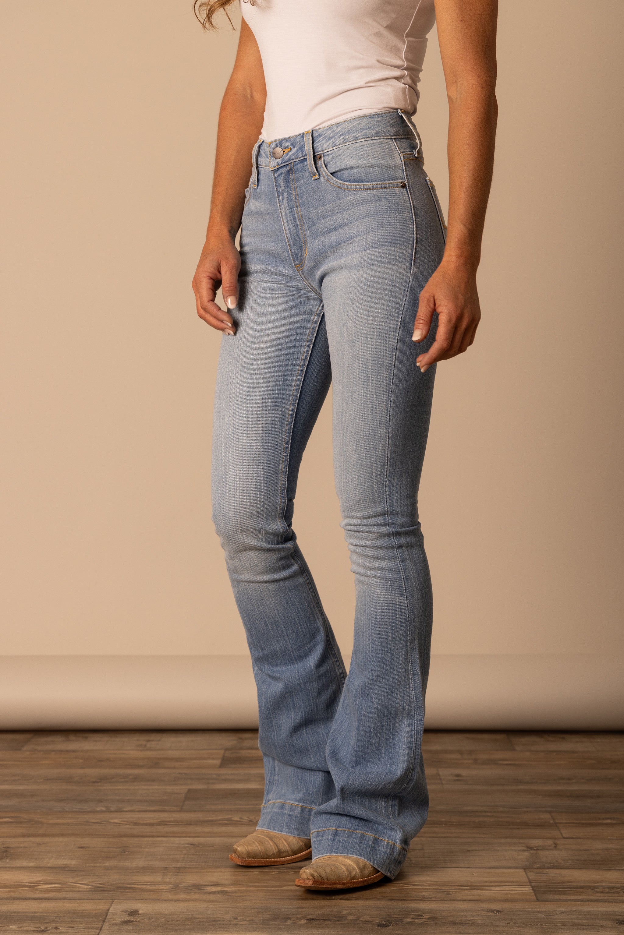 Elevate your Western wardrobe with the Jennifer Light Wash, one of Kimes Ranch’s most iconic silhouettes. Designed to flatter every shape, these jeans combine a dramatic super-wide flare leg with a sophisticated trouser hem, offering a look that is as functional as it is fashionable.